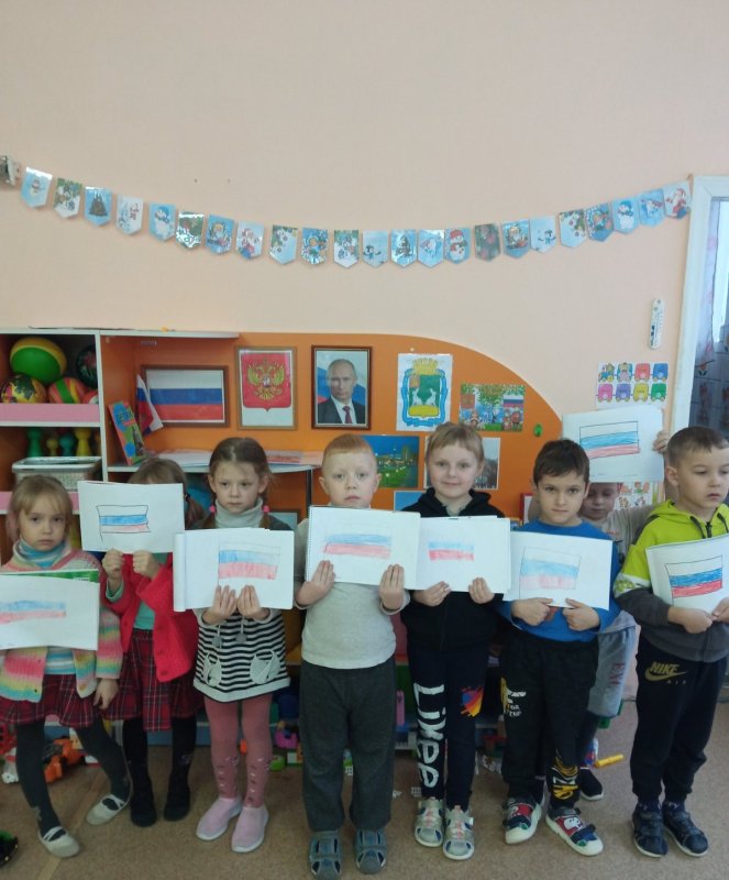 Проведение мероприятий патриотического направления очень важно в воспитании подрастающего поколения, ведь формирование отношения к своей стране начинается с детства. В нашей стране по названием «Малыш» есть День народного единства. В преддверии праздника «Дня народного единства» в подготовительных к школе группах с детьми проводился познавательный час «День народного единства». Педагоги с детьми беседовали о государстве Российская Федерация, о малой Родине, об истории праздника «День народного единства», «Что означает – народное единство?», рассматривали картины о родной природе, читали стихотворения о Родине. Дети играли в русские народные подвижные игры «Гуси – лебеди», «Салки», «Горелки», в сюжетно – ролевую игру «Семья». С музыкальным руководителем слушали и подпевали Гимн России. В конце познавательного часа ребята выполнили флаг - триколор РФ, который подарили своим друзьям – одногруппникам на праздничном мероприятии.